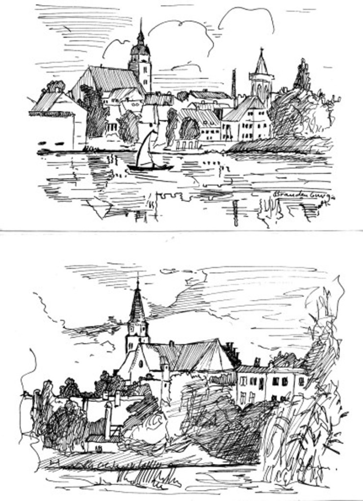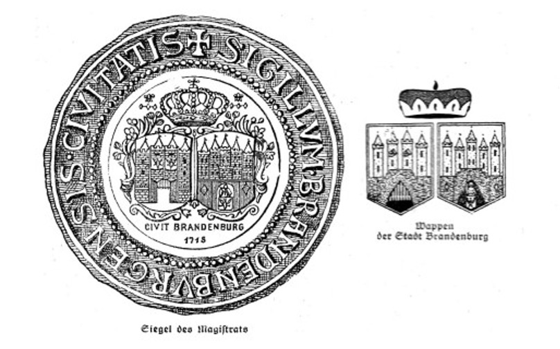 Geboren im März 1932, am Ende des Krieges also gerade 13 geworden, alt genug um einigermassen zu verstehen, was sich abspielte, zumal ich relativ intelligent war und bin (siehe hier). Geboren und aufgewachsen in Brandenburg/Havel, der tausend Jahre alten preussischen Industrie- und Garnisonsstadt. Damals so etwa 70 000 bis 90 000 Einwohner, politisch vor der Nazizeit immer stark links: Sozialdemokraten und Kommunisten, was die Stadt Hitler anscheinend nicht sehr sympathisch machte. Industrie: Stahlwerke, Arado – Flugzeugwerke, Opel – Lastwagenfabrik, um nur die wichtigsten zu nennen. Kasernen fünf Minuten von unserem Haus. – Die Stadt über 1000 Jahre alt, viele historisch alte Gebäude wie der Dom, die St.Katharinen- und St.Gotthard-Kirche, das Paulikloster, Stadttortürme, Reste der Stadtmauer, usw. Landschaftlich sehr schön: die Havel, einige Seen und viel Wald. Die Stadt bestehend aus der Altstadt und Neustadt, daher das Doppelwappen (Altstadt links). Ich war mächtig stolz, Altstädter zu sein, da mir das irgendwie historischer (älter) zu sein schien, obwohl sowohl Alt- wie auch Neustadt “mittelalterlich alt” sind. Vor allem nahm ich es den Neustädtern übel, dass sie irgendwann vor einigen hundert Jahren den Roland, der bis dahin vor dem altstädtischen Rathaus stand, gestohlen hatten und vor ihrem Rathaus aufstellten (allerdings weiss ich nicht, ob das historisch belegt ist). In den letzten Kriegswochen wurde das neustädtische Rathaus durch Bomben zerstört und der Roland steht jetzt wieder vor dem altstädtischen Rathaus: historische Gerechtigkeit!