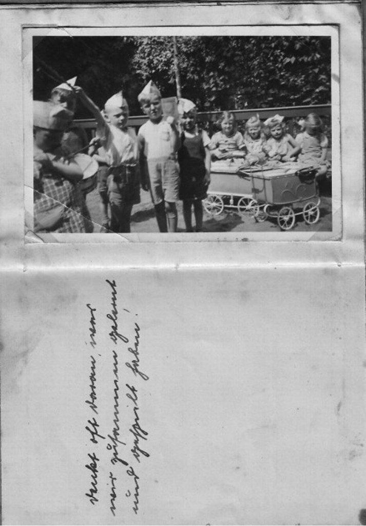 “Einen herzlichen Gruss aus dem Kindergarten! Tante Hedwig, Bandenburg, den 13.4.1938.