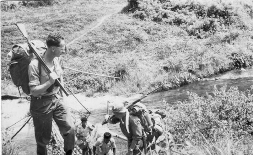 Unterrichtssprache an der Universität war zu meiner Zeit Englisch, das aber nach meinem Weggang durch Malayisch ersetzt wurde. Schulen waren malayisch (Bahasa kebangsaan), chinesisch (Mandarin) oder englisch.Chinesische Hochzeit. Unser Oberassistent heiratet. Im Vordergrund Mitte Professor John Hendrickson.ExpeditionenKurz nach meiner Ankunft unternahm der gesamte Lehrkörper des zoologischen Institutes eine dreiwöchige Tour per Jeep durch Malaya. Wir waren fünf: Professor John Hendrickson, Tony Berry, seine Frau Pek Yong Berry (eine Chinesin), Satvant Singh Daliwhal (ein Sikh) und ich. Eine eindrucksvolle Erfahrung, obwohl ich an einem der ersten Tage schrecklich an “totalem” Durchfall litt: ich verschwand in den Busch, entleerte mich hinten und vorne, und damit war es ausgestanden. Anscheinend hatte sich damit eine Immunität entwickelt, denn derartige Anfälle hatte ich seitdem nie. Um uns gegen Malaria zu schützten, schluckten wir jeden Tag unsere Chloroquin-Tablette, damals sehr wirkungsvoll, da sich Resistenz noch nicht ausgebildet hatte. Hendrickson war Herpetologe, Tony Malacologe, Pek Yong ebenfalls Herpetologin (Amphibien), Satvant Genetiker, und ich entwickelte mich gerade zum Parasitologen. Die Faunenvielfalt enorm. In jedem kleinen Tümpel von Süsswasser so etwa ein halbes Dutzend Fischarten. Nachts gingen wir oft auf Amphibienjagd mittels Kopflampen, ihr Licht wurde von den Froschaugen reflektiert und ermöglichte so die Lokalisierung der Frösche. – Einige Monate später machten wir eine kurze Expedition in den Nationalpark (Taman Negara) in Zentralmalaya. Am beeindruckendsten dort die Schreie der Gibbons, die über weite Täler hinweg zu hören waren, die enorme Pflanzenvielfalt, und die “hornbills”, grosse Vögel mit riesigen Schnäbeln. Allerdings waren viele Vögel, trotz des Artenreichtums, oft nur mit einiger Schwierigkeit zu sehen, und nur in der Dämmerung. John Hendrickson musste sich vorzeitig verabschieden, weil er zu einem Interview nach Hawaii musste. Er hatte sich um die Stelle des Direktors des East-West Centers in Hawaii beworben, eine Stelle, die er dann auch bald übernahm. Tony Berry wurde sein Nachfolger. – Die weitaust interessanteste und erfolgreichste Expedition, aus meiner Sicht, war jedoch eine spätere in den Taman Negara mit Lord Medway, der erst später als Dozent zu uns kam. Er war Wirbeltierspezialist (Vögel und Säuger), sprach fliessend malayisch, und war vorher in Borneo gewesen. Für seine Untersuchungen fing er vor allem Fledermäuse und andere kleine Säuger, von denen ich eine Auswahl sezierte und auf Parasiten untersuchte. Es gelang mir so, eine völlig neue Fauna kleiner Saugwürmer (Trematoden), darunter neue Gattungen und Unterfamilien, erstmals zu beschreiben. Für eine der Gattungen,Renschetrema(nach meinem Doktorvater Bernard Rensch benannt) wurde später eine neue Familie errichtet. Expedition im malayischen Urwald (Taman Negara).
